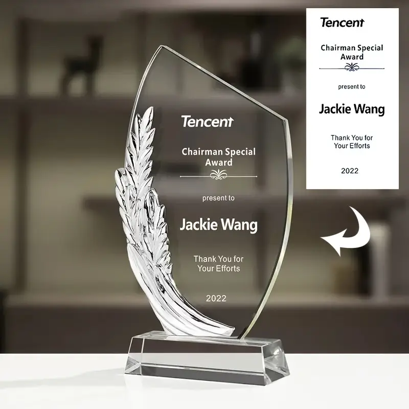 Celebrate achievements with this custom engraved glass trophy, featuring a stunning golden wheat design that symbolizes growth and success. Crafted from premium crystal, this personalized award is perfect for employee recognition, corporate milestones, and universal holiday celebrations. Customize it with a photo, name, or special message to create a one-of-a-kind keepsake.